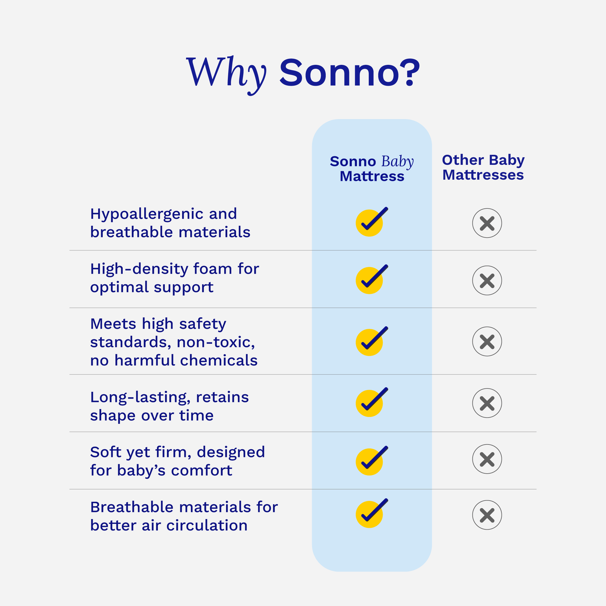 Babies need a flat, firm and even sleeping surface: our Sonno Baby Mattress has the right firmness to support your baby's spine.